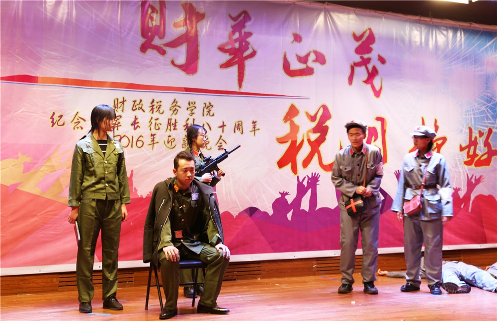 12月7日,财政税务学院在沙河大学生活动中心金色大厅举办了纪念长征胜利80周年暨迎新晚会。出席本次活动的有财政税务学院院长白彦锋,党委副书记宋立岩,副院长何杨、任强,院长助理汪昊,以及乔志敏、韩淼、杨龙见、于来、于均光、马江聆、蒋绮雯等老师。财政税务学院本科及研究生的同学们参加了本次活动。