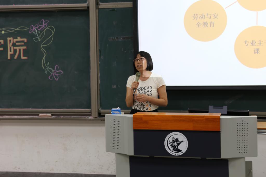 团委副书记陈颖老师热情地为同学们讲解了学生会、艺术团等部门与社团,使同学们对相关内容有了初步了解。最后由2017级辅导员徐燕妮老师在简单的自我介绍之后,表达了对于同学们大学生活的美好祝愿