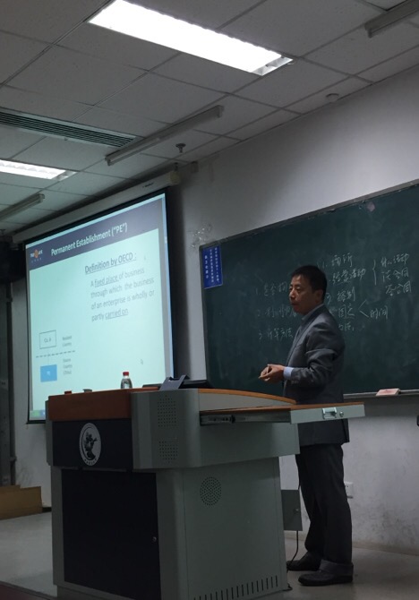 赵老师讲解的第一个案例是中材国际天津子公司印尼代表处代扣税争议案件。赵老师认为分析这个案件应主要关注三个问题:一是中材国际天津公司在印尼代表处是否满足印尼常设机构的认定条件;二是利润归属问题;三是计算方法问题。赵老师首先从常设机构认定的关键要点(场所、经营活动、控制以及固定性)对该代表处进行分析,认为其确实构成常设机构。接着,赵老师认为应进一步分析利润归属问题,即确定归属于常设机构的利润。赵老师从税收协定入手,找到利润归属中的争议点:一是常设机构是否视为独立企业;二是是否遵循独立交易原则;三是一般反避税问题。同时,赵老师认为利润归属还与常设机构的功能、风险有关。这里的功能指的是“人”的因素,即常设机构人员的数量、质量及所处岗位;风险是指决策由谁来做,诸如合同违约等风险由谁来承担。赵老师通过对该案例的分析,帮助同学们复习了有关常设机构认定的知识,同时同学们也掌握了企业设立常设机构时应注意的问题。