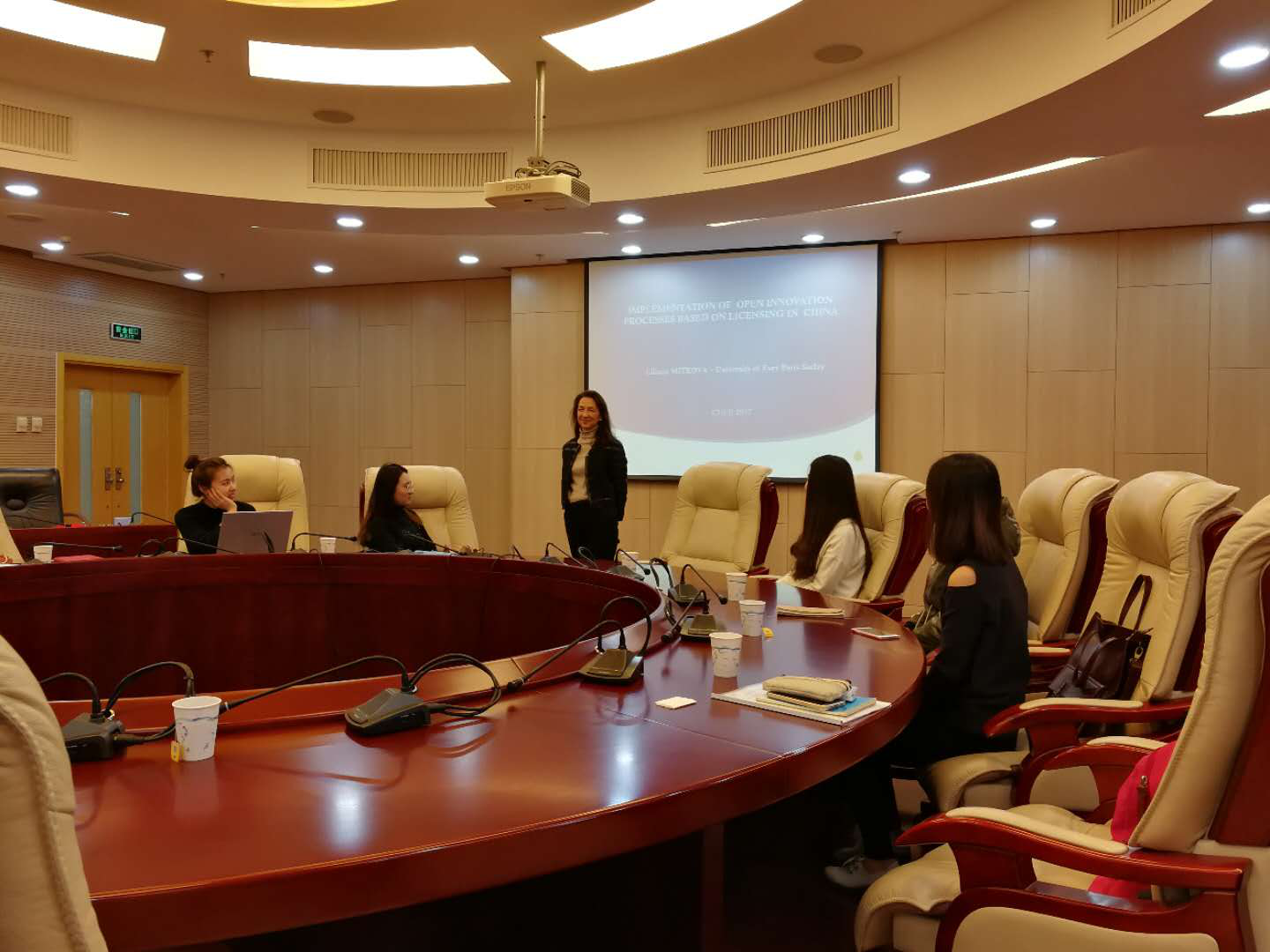 2017年11月27日,应我院企业科技金融创新研究中心、刘金科副教授负责的“海外学术伙伴开展合作科研项目”邀请,法国埃夫里大学UPE管理研究所“创新网络与国际动态”研究组组长Liliana教授来访我校财政税务学院,开展了以“Implementation of Open Innovation Processes Based On Licensing In China”为主题的学术讲座并参加了相关学术研讨会。