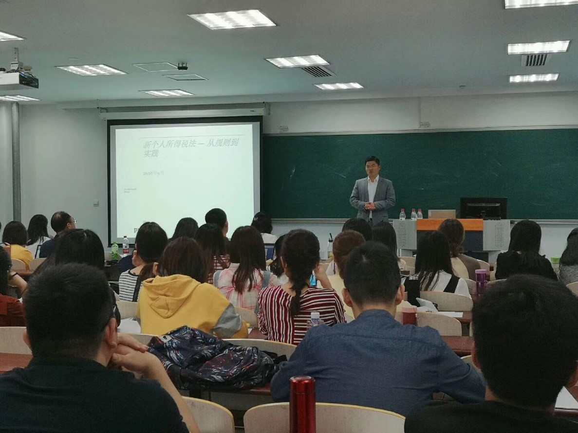 2018918日晚六点半,在中央财经大学沙河校区西区403教室,财政税务学院18级税务专业硕士第30期税收综合案例研究课程如期开讲。本期主讲嘉宾为杨后鲁老师,财政税务学院高萍老师主持了本次讲座。财政税务学院的汪昊、蔡昌、梁俊娇、恩惠、王文静、王怡璞等多位老师也参加了本次讲座。