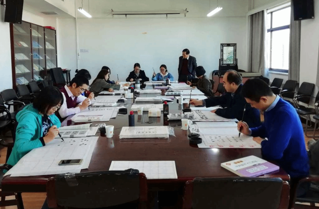 2018年10月17日,为丰富教职工的文化生活,财政税务学院分工会开展了书法学习活动。邀请了学校党委副书记、中国书法家协会会员陈明,指导老师们练习毛笔书法。副院长肖鹏、任强、何杨、分工会主席李贞、蔡昌、黄云、庞淑芬等多位老师同学参加了此次活动。