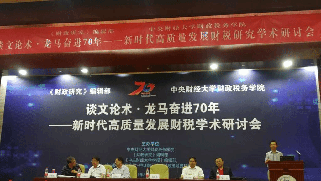 为迎接中华人民共和国成立70周年暨中央财经大学建校70周年、推动中国财税理论与政策研究,“龙马奋进70年•新时代高质量发展财税研究学术研讨会”在中央财经大学举办。来自中国社科院、清华大学、武汉大学、厦门大学、中国人民大学、西安交通大学、中国财政科学研究院、中国宏观经济学会、国家税务总局税科所、京东集团、中央财经大学、中南财经政法大学、西南财经大学、海南大学、辽宁大学、天津财经大学、《世界经济》杂志、《财政研究》杂志、《中央财经大学学报》杂志等单位的专家与学者,以及财政税务学院的师生共同参加大会。会议由亚美在线登录、《财政研究》编辑部、《中央财经大学学报》编辑部主办,中央财经大学中财-中证鹏元地方财政投融资研究所协办。