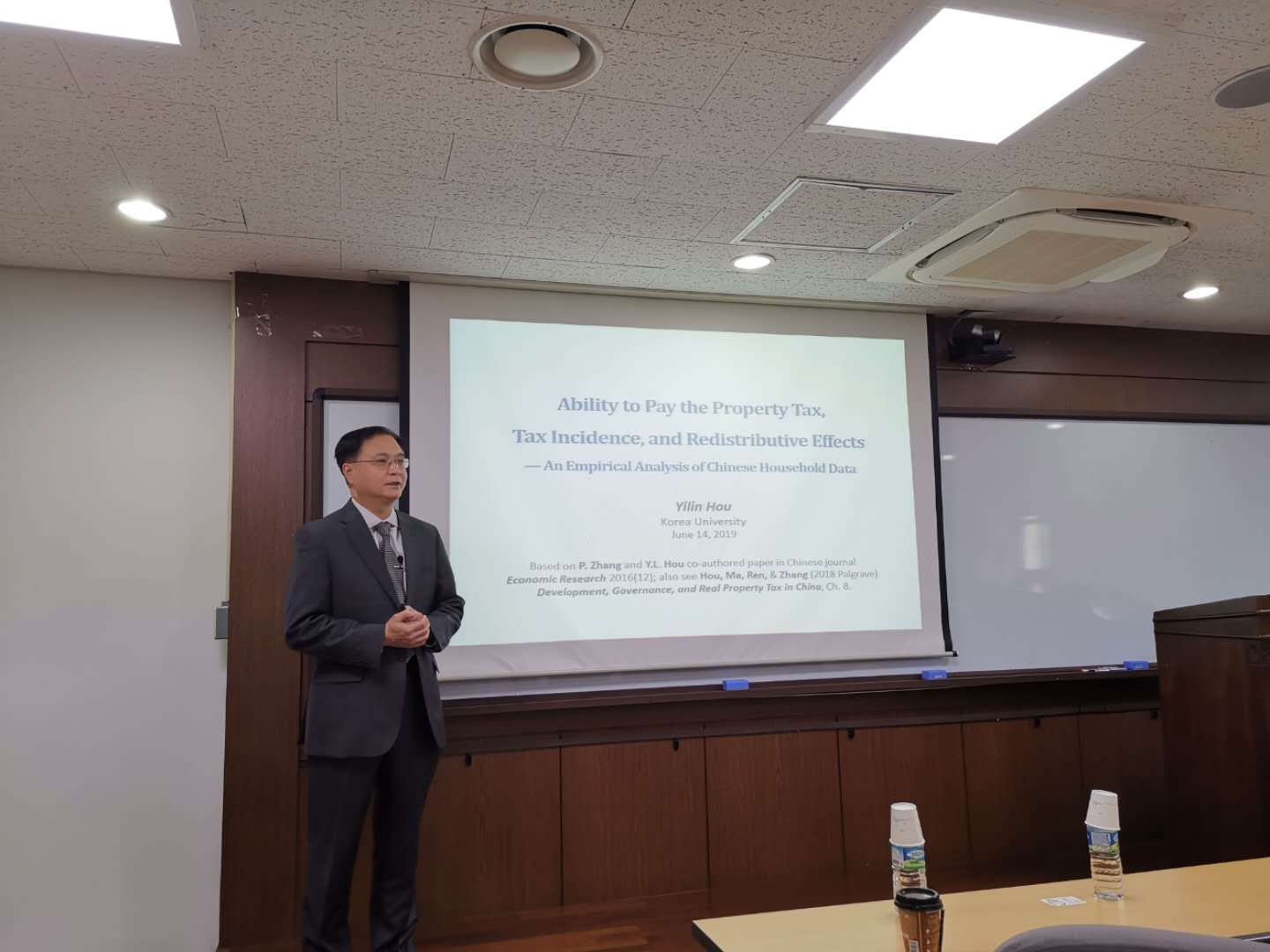 2019年6月中旬,中央财经大学中国财政协同发展研究中心“对居民开征房产税的中长期策略研究”课题组赴韩国开展学术研讨。课题组成员中央财经大学副校长马海涛教授、美国锡拉丘兹大学(Syracuse University)侯一麟教授、亚美在线登录任强教授和邵磊老师参加了此次调研。
