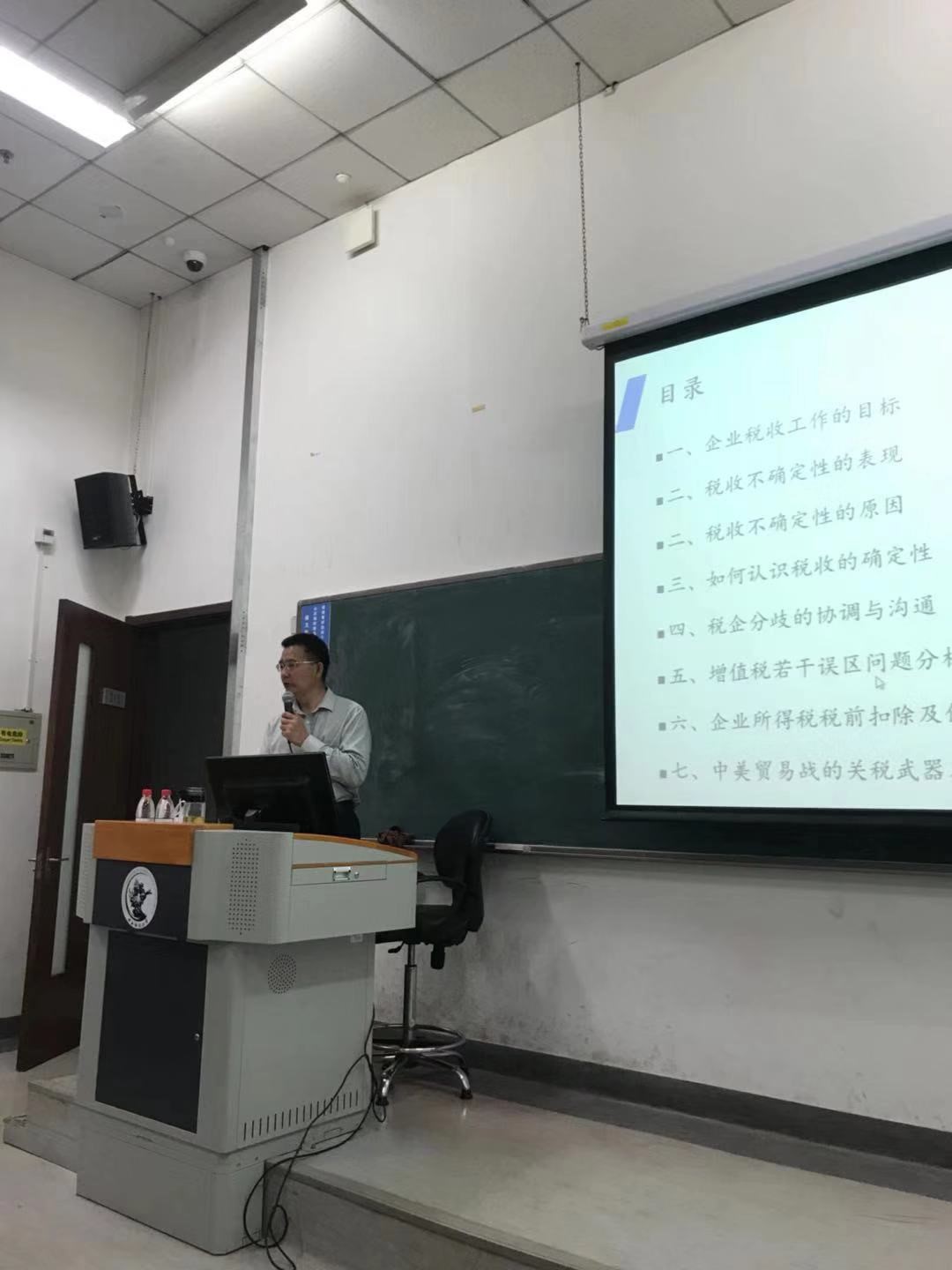 在税企分歧的协调与沟通上,王老师讲到要依法沟通、逐级沟通,要有文字沟通、不懈沟通。王老师通过几个自身工作中经历的案例,生动有趣地向同学们讲解了税收理论在实际工作中的应用。随后,王冬生老师向同学们进行了增值税若干误区问题分析以及企业所得税税前扣除及优惠的管理。