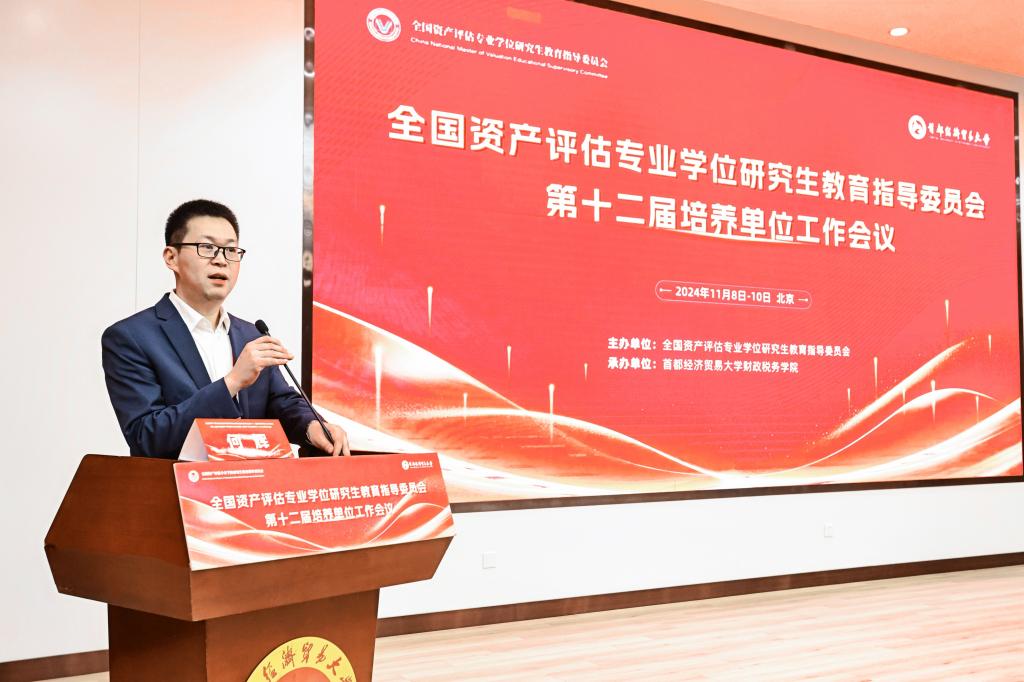 2024年11月9日,由全国资产评估专业学位研究生教育指导委员会(以下简称“教指委”)主办,首都经济贸易大学财政税务学院承办的“全国资产评估专业学位研究生教育指导委员会第十二届培养单位工作会议”在首都经济贸易大学博学楼学术报告厅顺利召开。