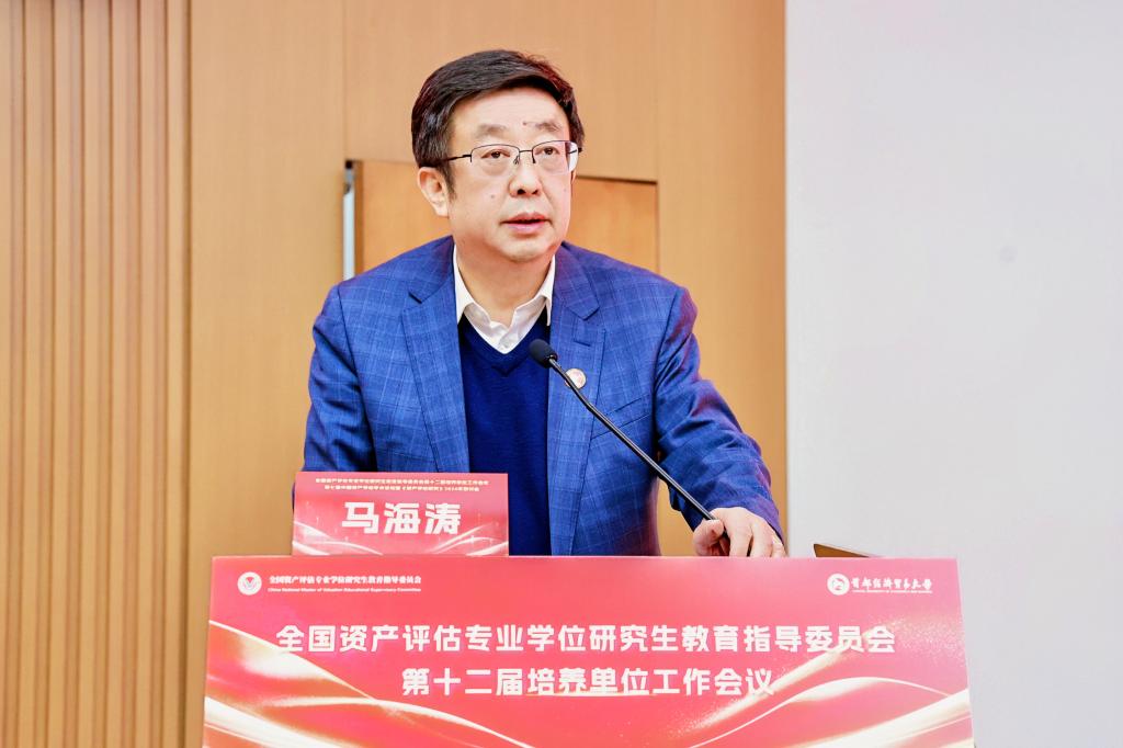 教指委副主任委员、中央财经大学校长马海涛教授致辞。马海涛强调《教育部关于深入推进学术学位与专业学位研究生教育分类发展的意见》的发布及《中华人民共和国学位法》的颁布,进一步明确了专业学位与学术学位同等重要的地位,为分类发展提供了政策及法律依据,专业学位研究生的教育迎来了新的时代。全国教育大会上,习近平总书记的讲话明确了教育强国的内涵和践行路径,为教指委指导专业学位研究生教育指明了方向。他指出资产评估专业硕士的高质量培养,一是要统筹教育资源,督促学位授权点协调;二是要完善专硕培养链条,保障专硕质量建设;三是要铸魂育人为根基,开放交流共发展。