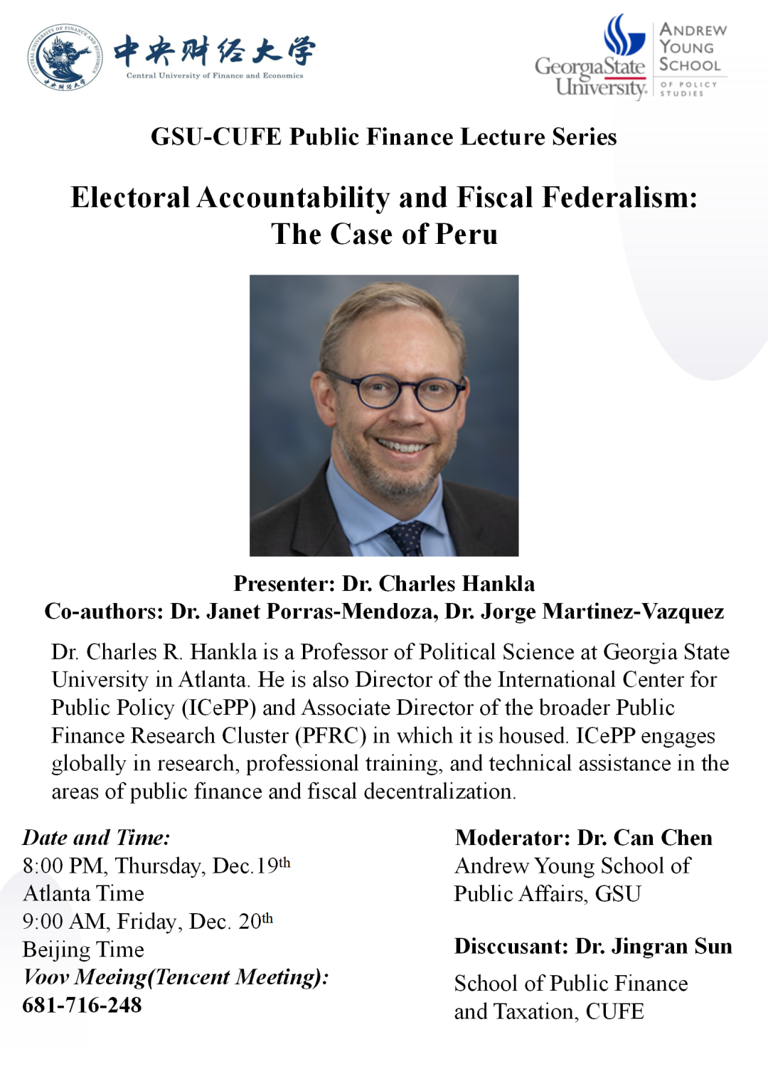 【“中财-乔治亚州立”公共财政国际学术前沿系列讲座】选举责任制度与财政联邦制:以秘鲁为例