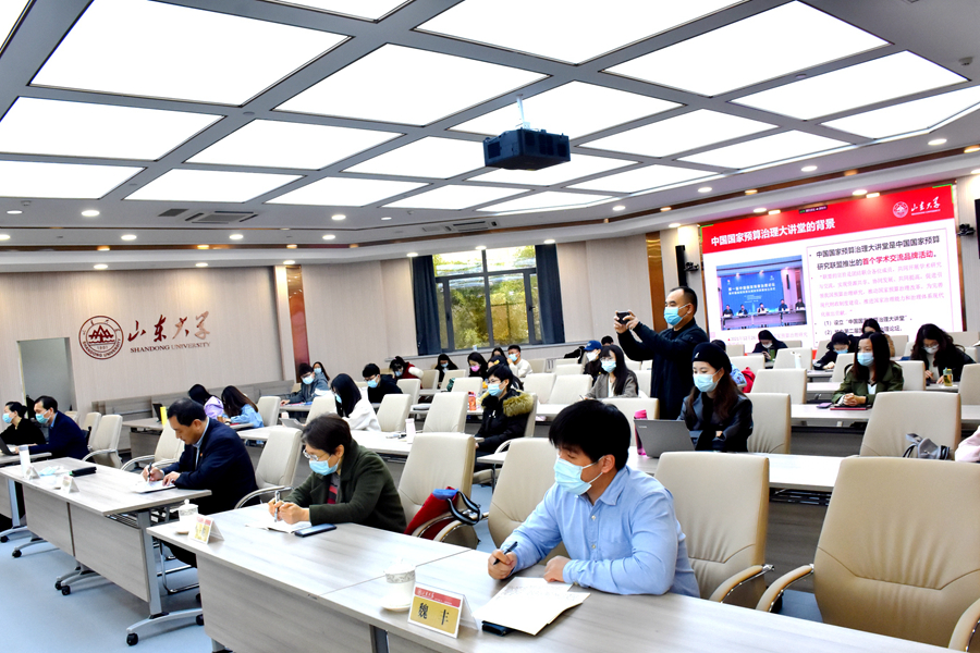 2022年3月26日上午,中国国家预算治理研究联盟主办的“中国国家预算治理大讲堂”正式拉开帷幕。此次会议采取线下线上相结合方式,在山东大学中心校区明德楼工会厅和中央财经大学学院南路校区学术会堂604分别设立两个线下主会场,并通过腾讯会议全程直播,来自全国多所高校、科研院所的专家学者、在校师生500余人参加了会议。会议由中国国家预算治理研究联盟秘书长、山东大学经济学院副院长石绍宾教授主持,中国国家预算治理研究联盟理事长、山东大学校长樊丽明教授致开讲辞,中国国家预算治理研究联盟副理事长、中央财经大学党委副书记、副校长马海涛教授进行首讲。我校财政税务学院参与承办会议,财税学院院长兼财政发展协同创新中心主任白彦锋、研究生院副院长肖鹏、人大预算审查监督研究中心副主任姜爱华、财税学院副院长刘金科、政府管理学院教授曹堂哲以及财税学院与财政发展协同创新中心教师等参加线下会议。