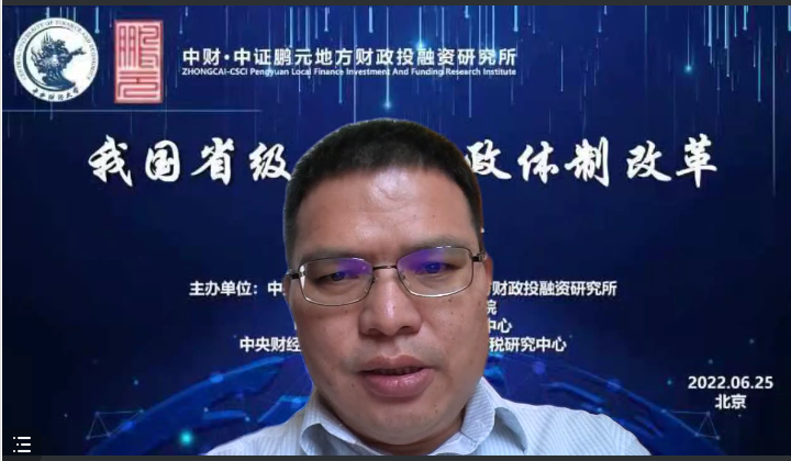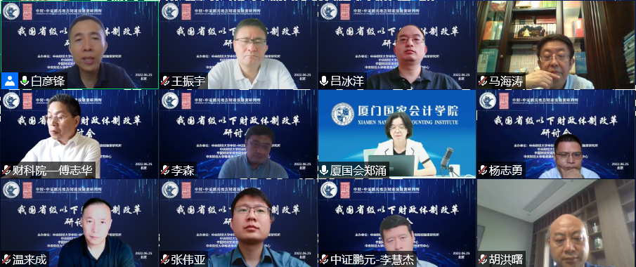 2022年6月25日,由中央财经大学中财-中证鹏元地方财政投融资研究所、亚美在线登录、中国财政发展协同创新研究中心、中央财经大学粤港澳大湾区研究院财税研究中心联合主办的我国省级以下财政体制改革研讨会在线上成功举办。来自中国社会科学院、中国财政科学研究院、厦门国家会计学院、中国人民大学、辽宁大学、山东财经大学、中南财经政法大学、中央财经大学,以及中证鹏元资信评估股份有限公司的十几位专家学者进行了发言。来自全国各地的专家学者、学生,以及社会各界人士7200多人通过腾讯会议、百度直播参加了研讨会。
