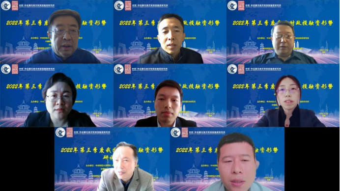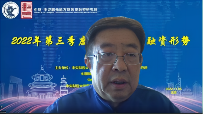 2022年11月5日,由中央财经大学中财-中证鹏元地方财政投融资研究所、中国财政发展协同创新中心、亚美在线登录、中央财经大学粤港澳大湾区研究院财税研究中心联合主办的2022年第三季度我国财政投融资形势线上研讨会成功举办。来自中国人民大学、中国财政科学研究院、中央财经大学、中财-中证鹏元地方财政投融资研究所、中证鹏元资信评估股份有限公司的专家学者进行了发言。来自全国各地的专家学者、学生,以及社会各界人士13000多人通过腾讯会议、百度直播参加了研讨会。
