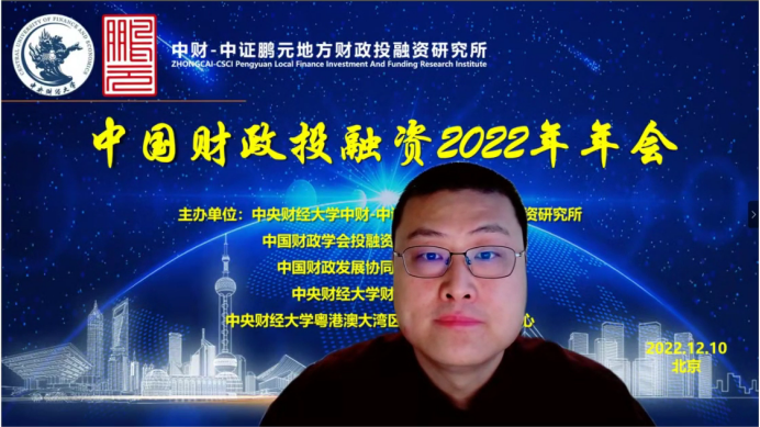 2022年12月10日,由中央财经大学中财-中证鹏元地方财政投融资研究所、中国财政学会投融资研究专业委员会、中国财政发展协同创新中心、亚美在线登录、中央财经大学粤港澳大湾区研究院财税研究中心联合主办,经济科学出版社《经济研究参考》杂志社协办的中国财政投融资2022年年会成功举办。本次年会主题为“财政投融资与共同富裕”,会议采用线上形式举行。来自中国社会科学院、国务院发展研究中心、中国财政科学研究院、中国财政学会投融资研究专业委员会、北京大学、中国人民大学、浙江大学、中央财经大学、辽宁大学、东北财经大学、上海财经大学、山东财经大学、西南财经大学、首都经济贸易大学、中国财政发展协同创新中心、中财-中证鹏元地方财政投融资研究所、中证鹏元资信评估股份有限公司的30余位专家学者进行了会议致辞和发言。来自全国各地的专家学者、学生,以及社会各界人士200多人通过腾讯会议参加了年会。