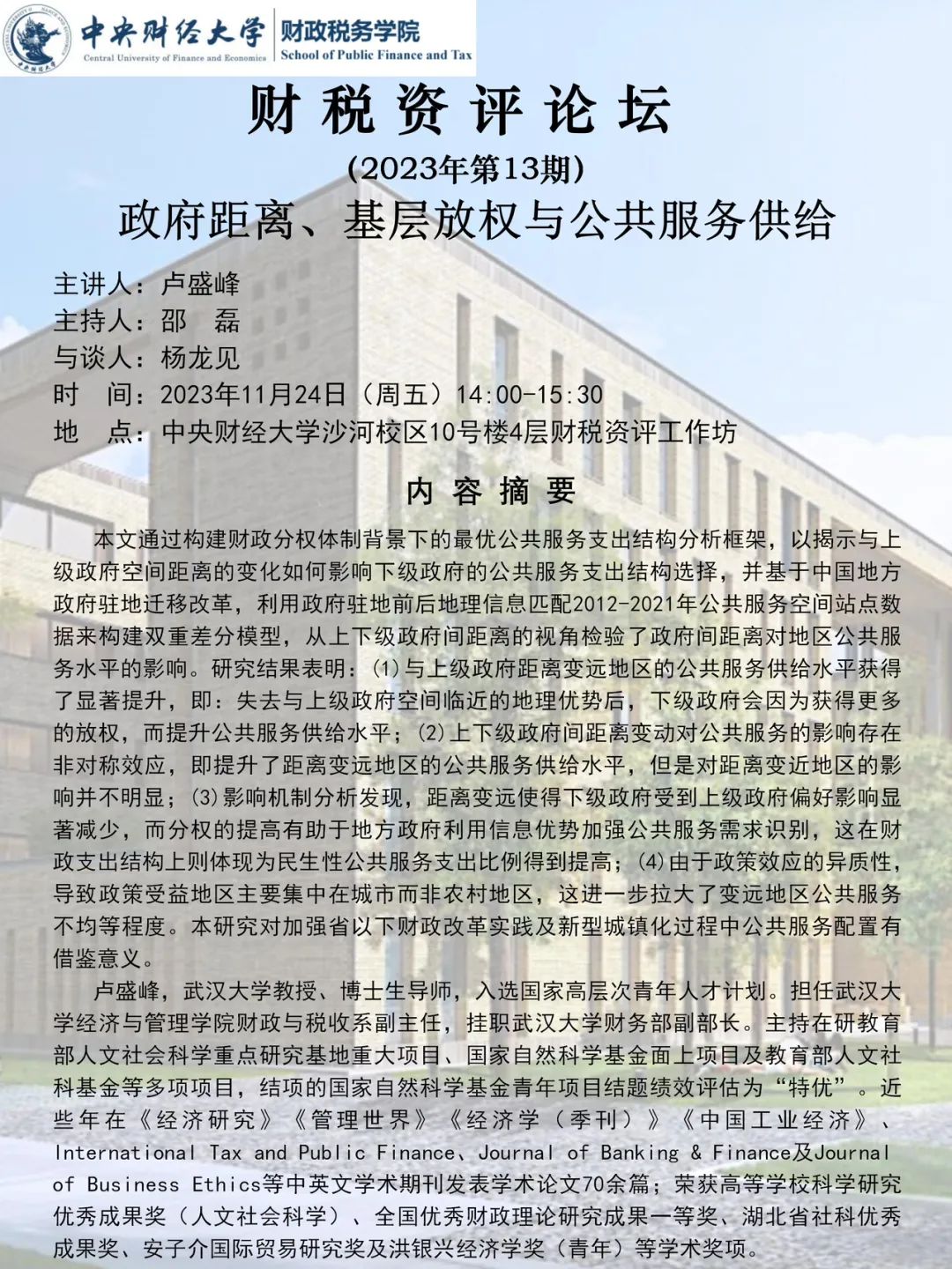 【学术动态】财税学院举办财税资评论坛第十一期