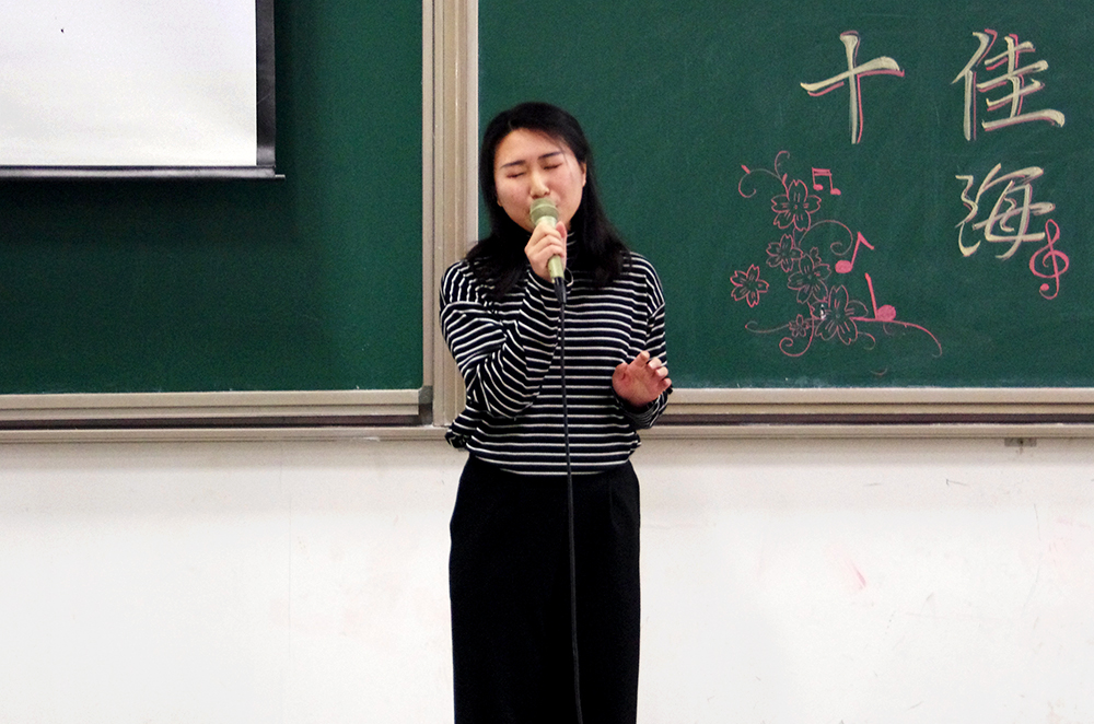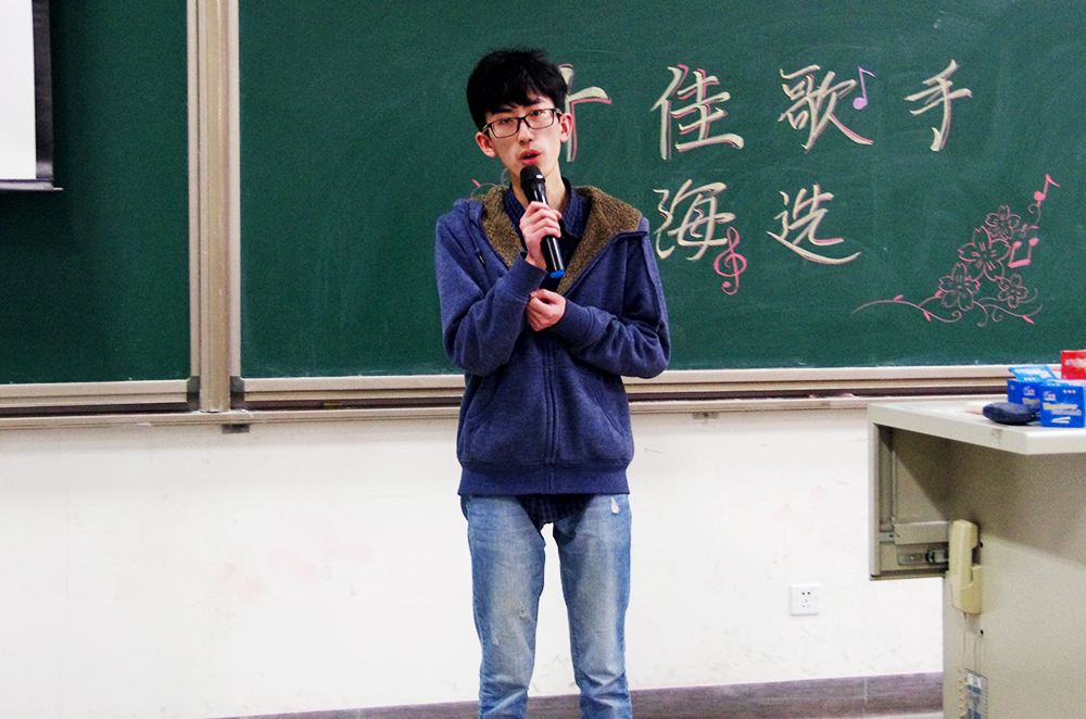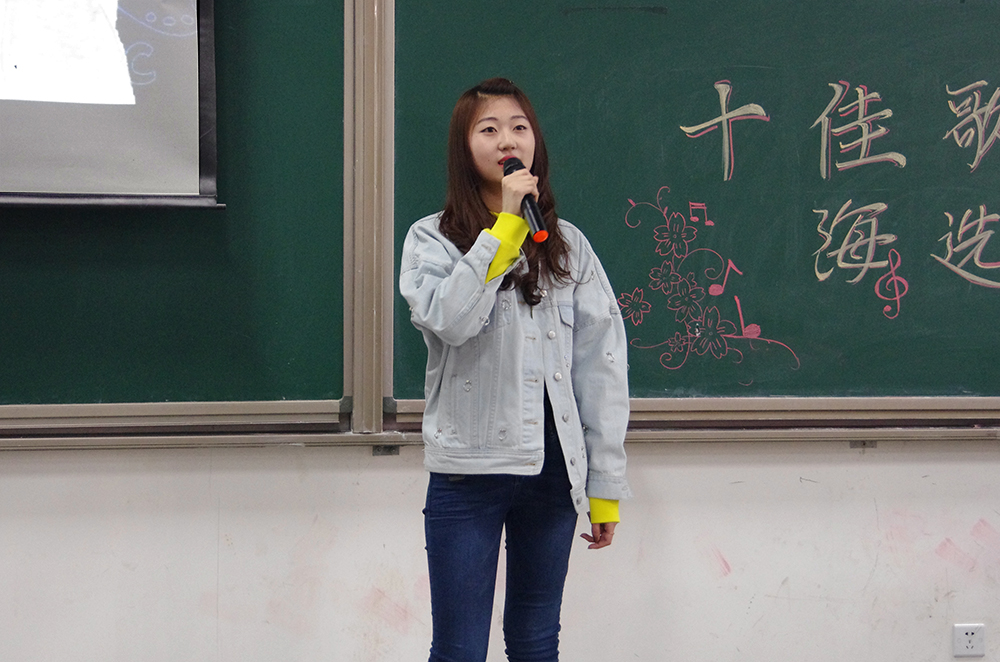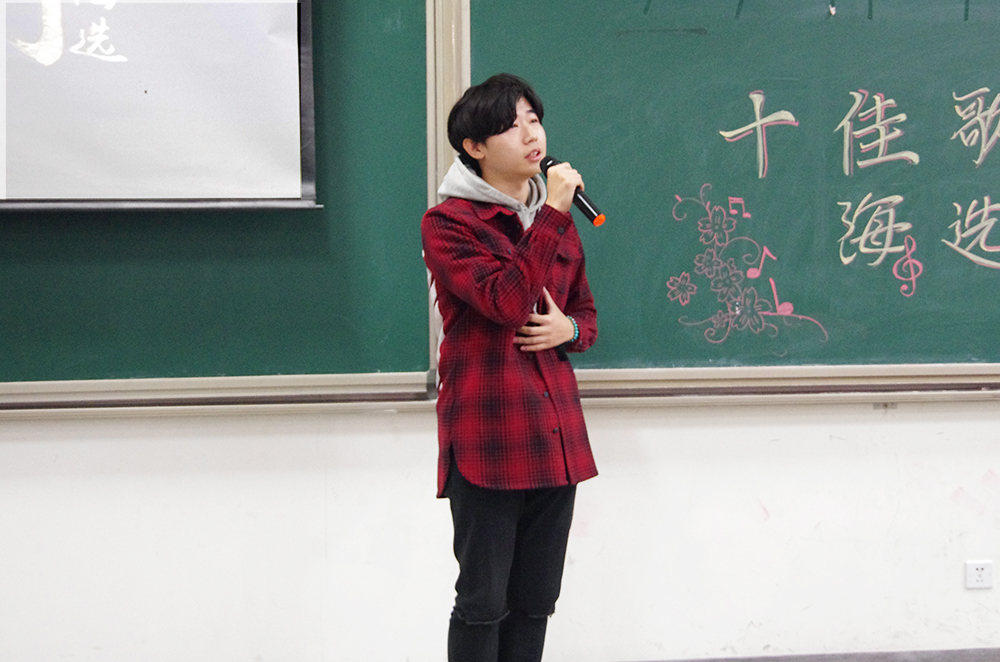 比赛的第一个环节,三十一位参赛选手轮流演唱精心准备的两分半钟的歌曲,无论是舒缓的情歌还是欢快的劲曲,都被同学们演绎出别致的风采。选手们都尽力拿出自己最好的状态,也许技巧有高低,音色有优劣,但是他们对于歌唱的热爱却是一样的。选手们和观众积极互动,一次次把现场的气氛带向高潮。