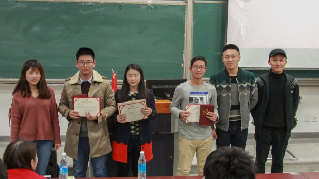 一分钟陈述结束之后,由组织部王子卓同学宣布最佳代表人选,安徽省代表严春浩、贵州省代表柳连源、江苏省代表王誉桦入选并上台领奖,合影留念。最后,主持人刘天颀宣布本次财政税务学院十九大团课暨基础团校模拟人大活动圆满结束。