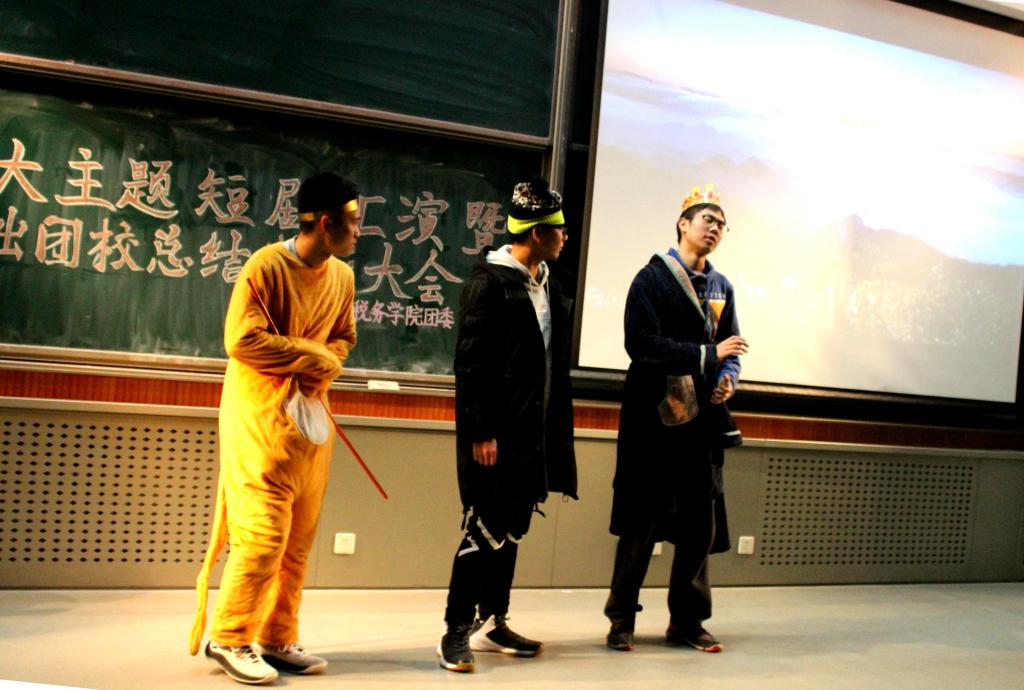 第一场短剧是由第六组同学带来的《有所为》。该短剧以一对老同学的故事为背景。剧中那位领导的选择告诉我们以人民的名义方能显示生命的尊严,以职责为使命方能彰显自己的价值。第二个节目是第二小组同学带来的《拍马屁运动会》。这场短剧从拍马屁总局一场令人啼笑皆非的运动会切入,讲述了一个被员工谄媚捧上高位的局长被新来的“临时工”揭露腐败行为坠入法网接受制裁的故事。将十九大报告中习近平总书记强调的从严治党、清正廉洁体现的淋漓尽致。