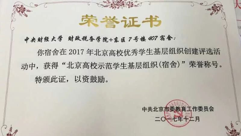 通过北京市教育工作委员会的严格考评,在2017年北京高校优秀学生基层组织创建评选活动中,亚美在线登录东区7号楼407宿舍,被评为“北京高校示范学生基层组织(宿舍)”。让我们向这些同学表示最诚挚的祝贺,希望他们能再接再厉,也希望学院同学以他们为榜样,为创建优秀集体不断努力。