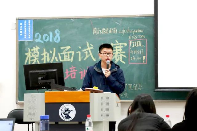 4月3日晚6点半,财政税务学院在中央财经大学沙河校区东区主教213教室举办了模拟面试大赛赛前培训。本次活动由院团委学生会学术实践部和税务研究会主办,邀请了学生就业创业指导中心的王开怀老师与同学们分享简历书写和面试方面的经验。院团委副书记陈颖老师和本次模拟面试大赛的部分参赛者参加了本次活动。