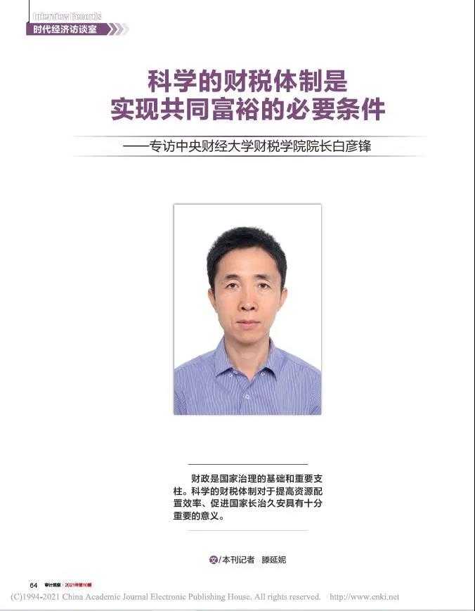 2021年10月,亚美在线登录院长、中国财政发展协同创新中心主任白彦锋教授就“科学的财税体制是实现共同富裕的必要条件”专题,接受了《审计观察》的采访。全文如下: