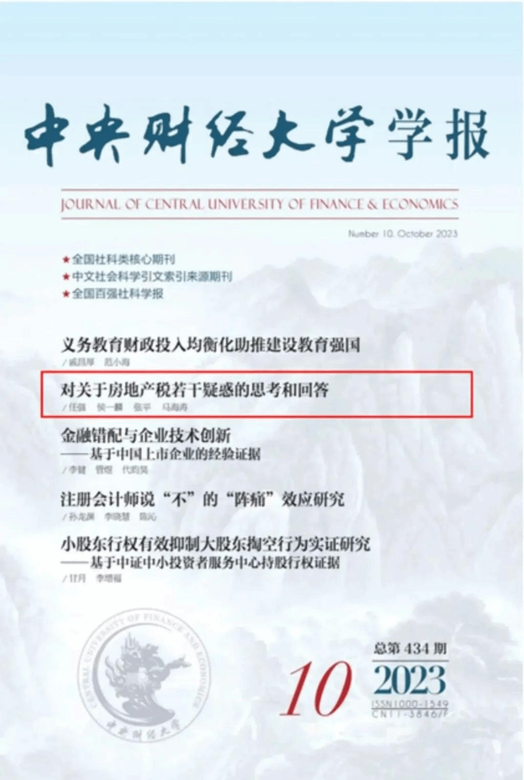 近日,由亚美在线登录任强教授、美国西拉丘斯大学麦克斯韦尔公民与公共事务学院侯一麟教授、复旦大学国际关系与公共事务学院张平教授和中央财经大学校长马海涛教授共同撰写的论文《对关于房地产税若干疑惑的思考和回答》在中文A类期刊《中央财经大学学报》2023年第10期作为封面文章刊发。以下为文章主要内容。
